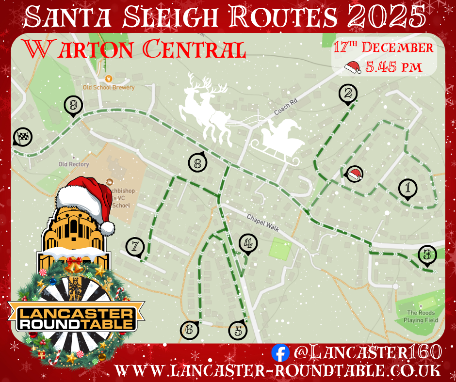 This December, Lancaster Round Table proudly continues the much-loved Santa Sleigh tradition, raising funds for local causes and spreading festive cheer throughout the district.